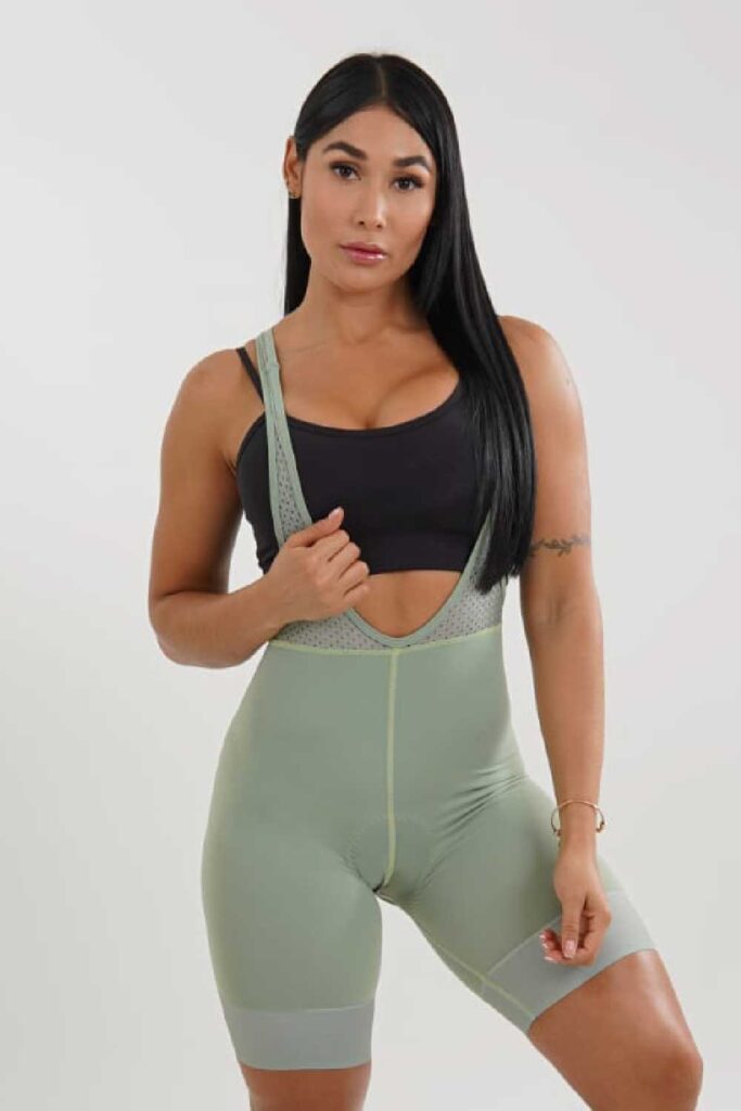 Licra Corta con Tirantas Ciclismo Mujer - XL, Verde Pistacho