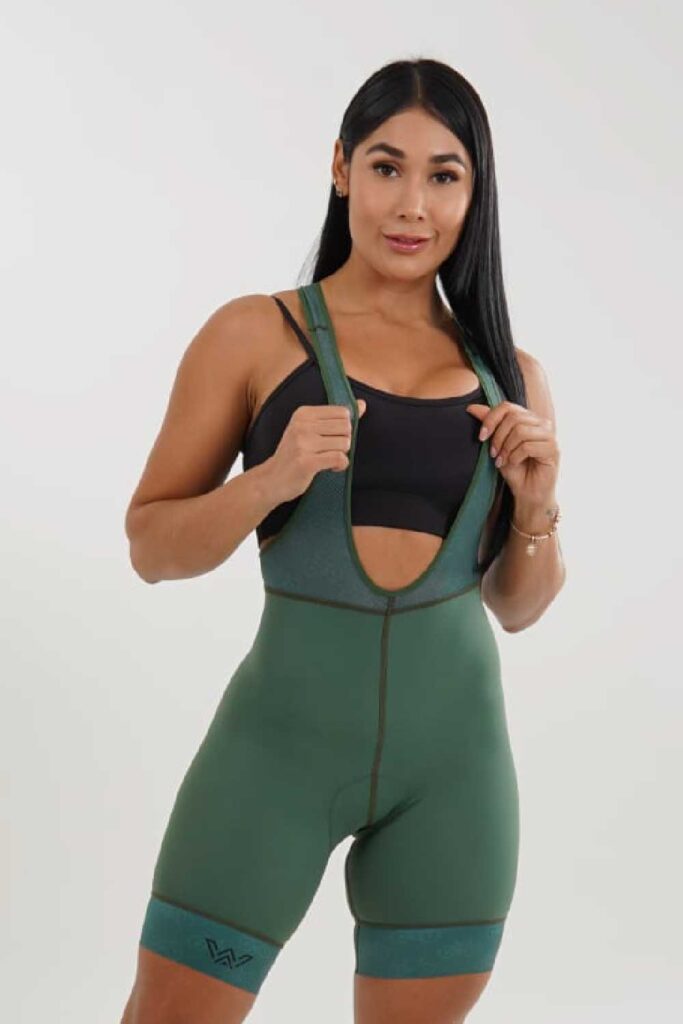 Licra Corta con Tirantas Ciclismo Mujer - XL, Verde Botella