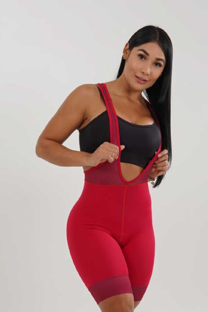 Licra Corta con Tirantas Ciclismo Mujer - XL, Rojo
