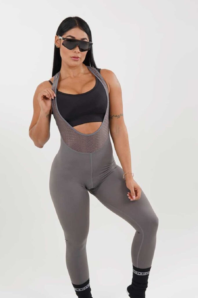 Licra Larga con Tirantas Ciclismo para Mujer - XL, Gris Azuloso