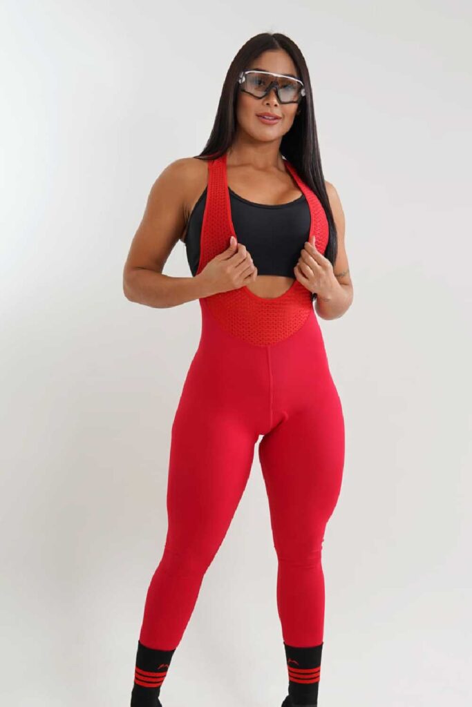 Licra Larga con Tirantas Ciclismo para Mujer - XL, Rojo